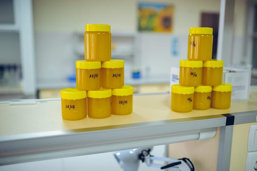 Мед - это полностью натуральный продукт. Это предписано межгосударственными стандартами и строго контролируется нами, поскольку мед проходит трехэтапную систему тестирования до и во время розлива в банки.